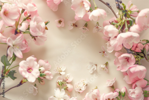 Fototapeta premium text "8 march" on pink flower background with copyspace