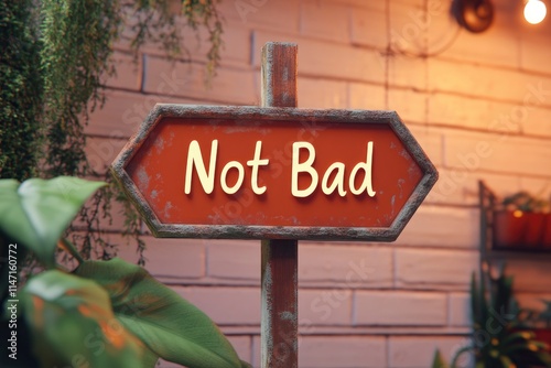 © Dzikrul Husnani, Obraz premium Text "Not Bad" , 3d rendering , mockup photoshop & style photo shop