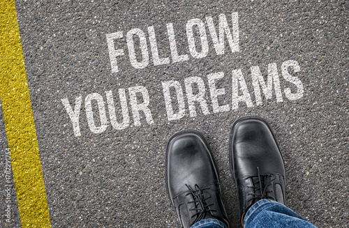 © Zerbor, Fototapeta premium Text on the road - Follow your dreams