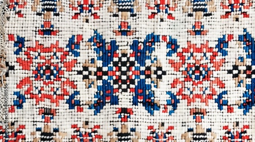 © mshynkarchuk, Fototapeta premium Textiles background: Handwoven unique pattern, Detailed Close-up of Handwoven geometric handmade Textile.