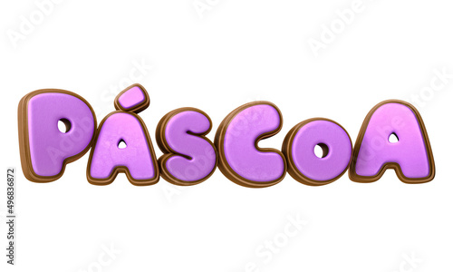 © Vitor, Fototapeta premium Texto 3D de Páscoa com textura de chocolate isolado em fundo branco.
