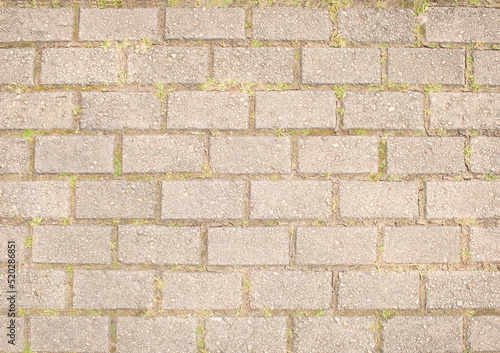 Fototapeta premium Textura de piso ladrillo urbano con tierra y pasto