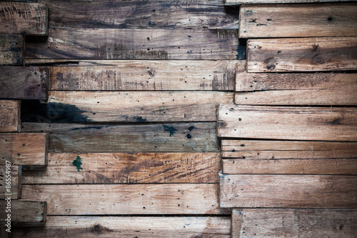 © hadkhanong, Fototapeta premium Texture and background of old log wall
