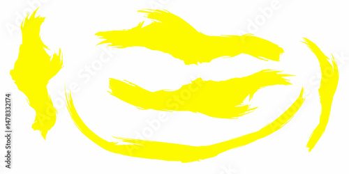 © Akmalmm , Obraz premium Texture brush set, yellow ink, brush pattern, wave pattern brush stroke material. Yellow brush stroke collection. Hand Drawn Regular Curved Lines Long And Short