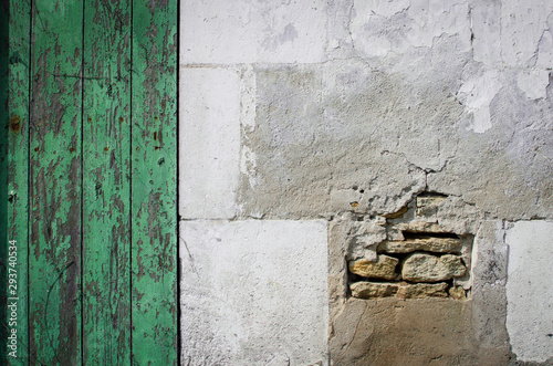 © david, Naklejka premium texture de vieux mur abîmé et vieux porte verte