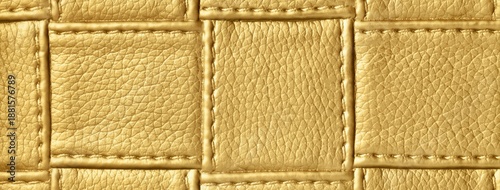 © nikol85, Fototapeta premium Texture golden leather background with quilted stitched pattern, macro. Abstract yellow upholstery surface