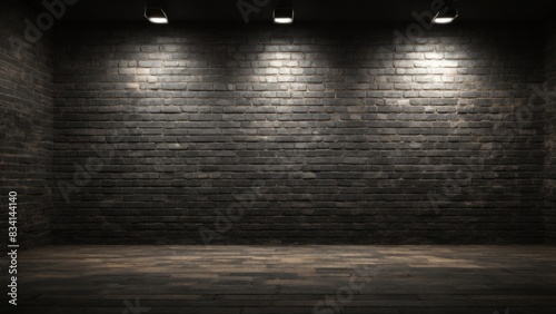 © Watcher, Obraz premium Texture of a dark brick wall with spot lighting