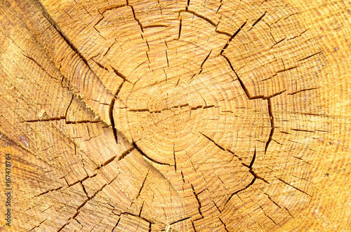 Fototapeta premium Texture of a saw cut of a log. The sawn tree and its year rings.