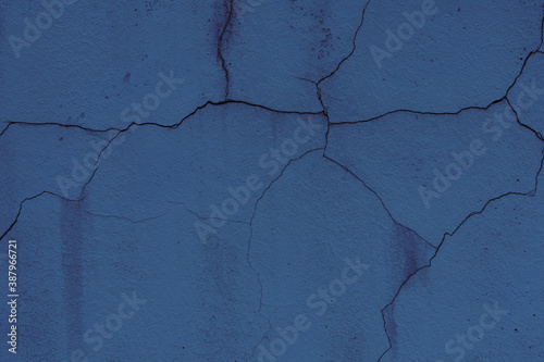 Fototapeta premium Texture of a wall covered with dark blue aged plaster. There are cracks on the surface of plaster