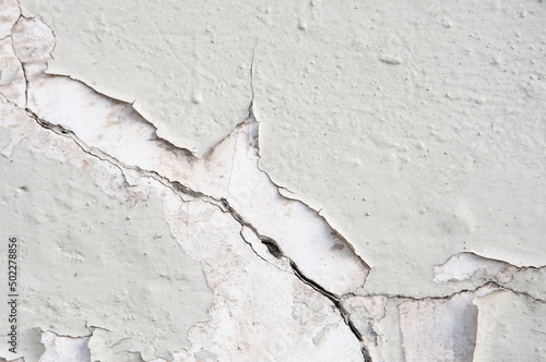 © fedotovalora, Obraz premium Texture of an old concrete light gray painted wall with cracks close up