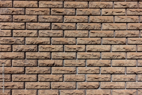 Fototapeta premium Texture of brown split face brick veneer wall with stretcher bond pattern