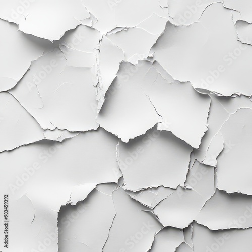 © Damerfie, Obraz premium Texture of Cracked White Paint on Wall Surface