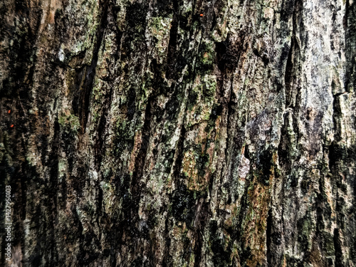 © Rury, Obraz premium Texture of dark rough bark. Tropical wood background, for 3D rendering materials and backgrounds.