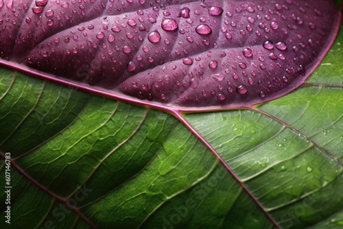Fototapeta premium Texture of green leaves with dew droplets. Generative AI