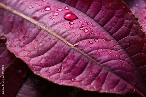 Fototapeta premium Texture of green leaves with dew droplets. Generative AI
