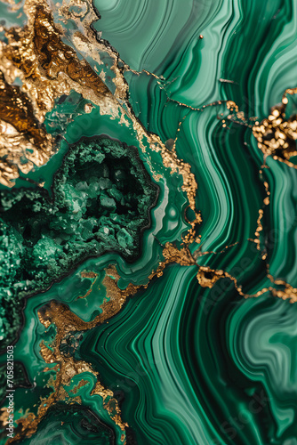 © ALL YOU NEED studio, Fototapeta premium texture of green malachite with gold veins close-up