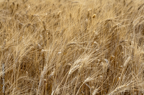 Fototapeta premium Texture of ripe ears of wheat growing in the field
