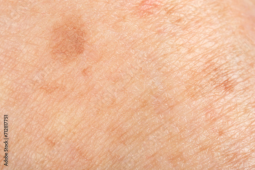 Fototapeta premium Texture of skin with pigmentation as background, macro view