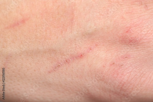© New Africa, Fototapeta premium Texture of skin with scratches as background, closeup
