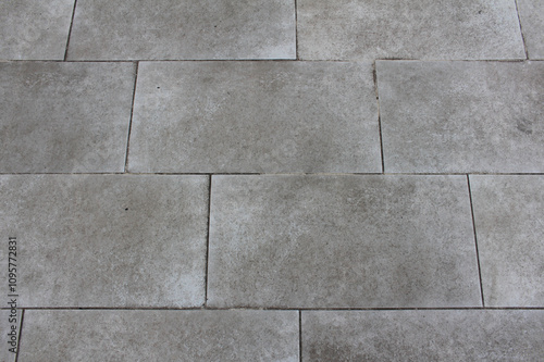 © Eriko Ochiai, Naklejka premium Texture of square paving tile. Pattern of tiles in the street. Close up of gray concrete pavers background.