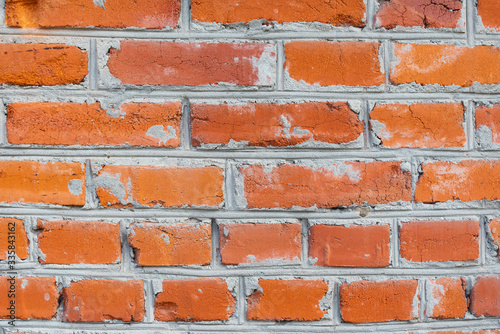 Obraz premium Texture of the old red brick wall with cracks. Background of old brickwork