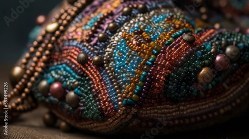 Obraz premium Texture on beaded handbag, close-up. AI generated