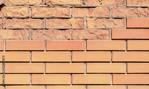 © Sofiia, Fototapeta premium texture orange brick wall with damaged fragments
