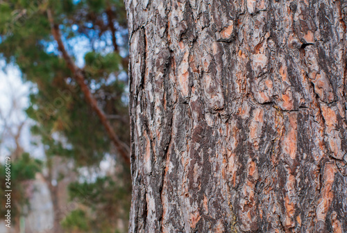 Obraz premium Texture pine bark and part of the park in the background
