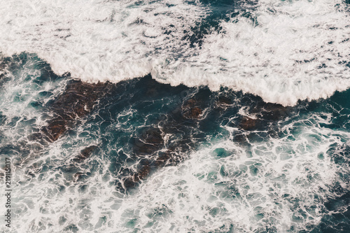 © Younes, Obraz premium Texture waves and rocks in the sea bali indonesia