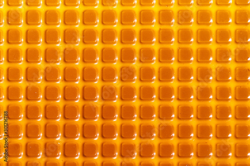 Fototapeta premium Texture with square yellow elements. Plastic candy lining