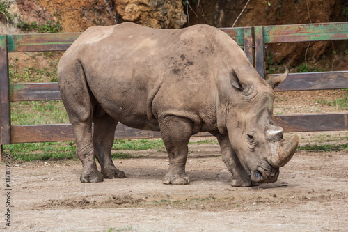 © Nuria, Obraz premium Textured and colored image of a beautiful rhinoceros. Image.