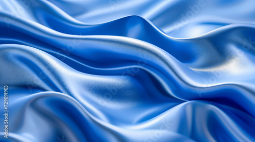 Naklejka premium Textured and smooth blue satin fabric, creating a backdrop of soft waves and elegant shiny material, reflecting luxury and fashion in a vibrant design