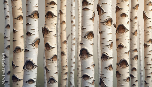 Fototapeta premium Textured background of birch tree trunks with distinctive bark for natural decor and woodland design concept