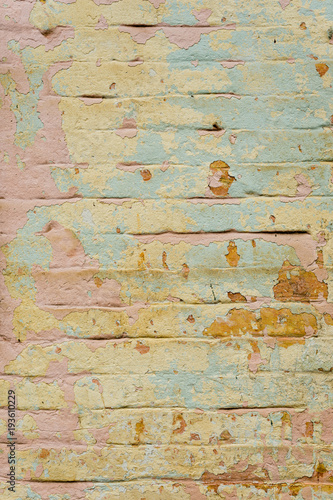 Fototapeta premium Textured background of multi-layer flaking paint on the wall. Mixing...