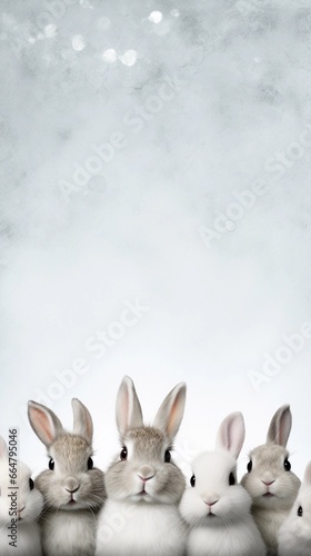 Fototapeta premium Textured background surrounded by cute bunnies, background image, vertical...