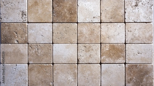 Naklejka premium Textured beige and cream tiles arranged in a grid pattern, ideal for home renovation projects