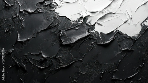 Fototapeta premium Textured black and white paint strokes, abstract background