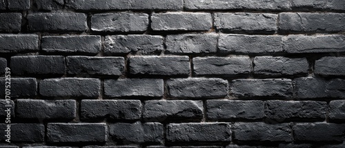 © Ranez, Obraz premium Textured Black Brick Wall Surface with Subtle Color Variations Horizontal Perspective