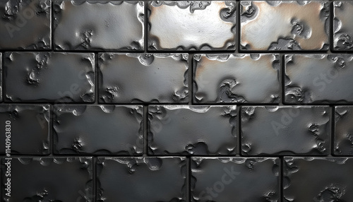 Naklejka premium Textured black metallic wall with glossy tiles, industrial and robust, modern...