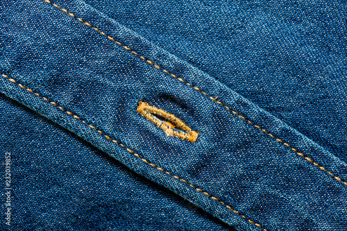 Fototapeta premium Textured blue denim texture stitched with a button-up texture