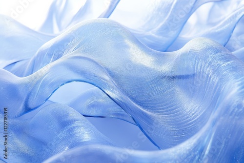 © ChaoticMind, Obraz premium Textured blue fabric flows and sways gently under soft lighting giving an ethereal feel to the setting