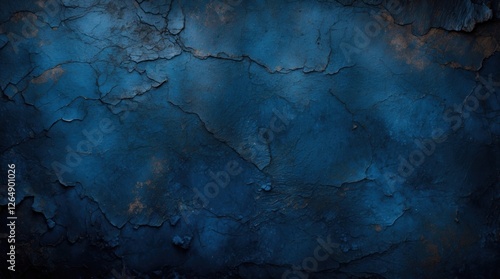 © AImmersive Imagery, Naklejka premium Textured blue wall background with cracks and dark tones ideal for design projects with Copy Space.