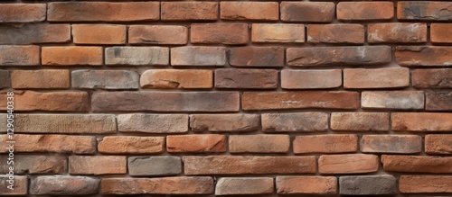 Fototapeta premium Textured brick wall background with a mix of orange, brown, and gray bricks...