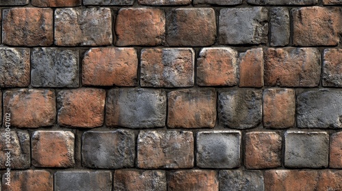 © olegganko, Obraz premium Textured brick wall featuring a mix of dark and light tones with an aged appearance