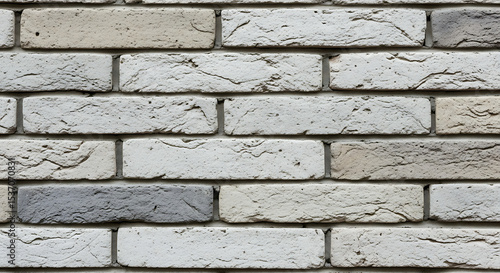 Obraz premium Textured brick wall with white and grey blocks in horizontal pattern