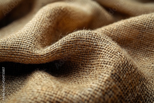 Fototapeta premium Textured Burlap Fabric Close-Up Natural Lighting Cozy Rustic Atmosphere...