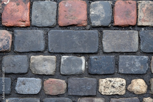 Obraz premium Textured cobblestone street close-up with colorful stones