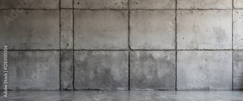 © MetaPixel, Naklejka premium Textured concrete wall with large rectangular panels in an industrial setting interior background