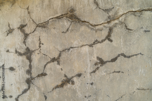 Obraz premium Textured concrete wall with visible cracks and imperfections, showcasing a weathered surface that adds character and depth, ideal for backgrounds in design and architectural projects