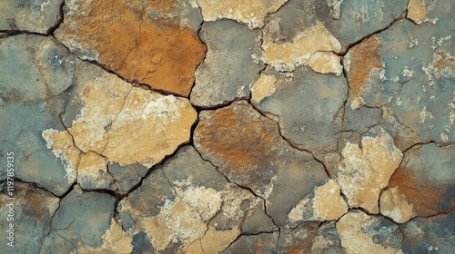 © Monchisa, Obraz premium Textured Cracked Surface with Earthy Tones and Unique Patterns